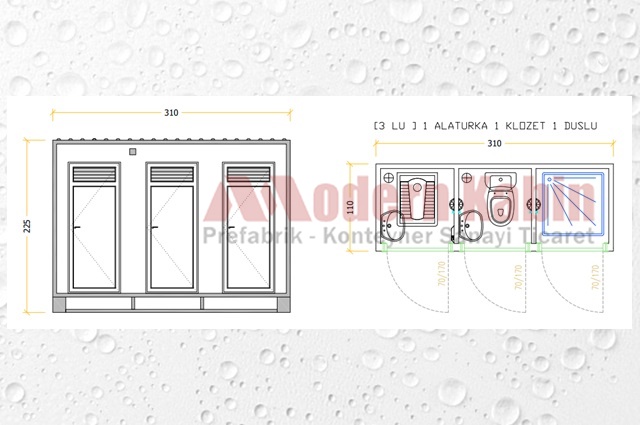 Sandwich panelden ürettiğimiz tuvalet ve duş imkanı olmayan bir çok yere konumlandırılabilen kabinlerimizi dilediğiniz ebatlarda tekli ,ikili ,üçlü ,dörtlü ,beşli ,koridorlu,engelli,atık su hazneli olarak ta sipariş vermeniz mümkündür.Üretilen kabinlerimiz benzerlerine göre yüksek kalitelerde imal edilmesi elektrik ve su bağlantı elemanlarından kapı, menfez pencerelerine kadar kalite standartlarında hammadde ve aksesuar kullanılmaktadır.Kullanım alanları arasında sosyal tesisler, belediye tesisleri, kamu tesisleri, park ve bahçeler, spor organizasyonları, uluslar arası kongre ve seminerler, fuar organizasyonları, stat ve salonlar, olimpiyatlar ve piknik alanları yer almaktadır.Firmamızda üretilen tuvalet kabinleri diğer üretim şekillerine nazaran yüksek kalitelidir.Tuvalet kabinlerinde kullanılan tüm malzemeler birinci sınıf kaliteden üretilmektedir.Ekonomik Pratik kullanım özelliğine sahiptir.Birçok farklı planda yüksek kalitede uzun ömürlü kullanım özelliğine sahiptir.Ürettiğimiz tuvalet kabinlerinde sıhhi tesisatından atık su giderine ve elektrik tesisat armatürlerinden tuvalet aksesuarlarına kadar her detayıyla kullanıma hazır halde sevk edilmektedir.Kolay monte edilip sökülebilir olduğu için daha sonra başka bir yere taşınabilmesi de mümkündür. mobil wc, mobil tuvalet, wc kabin, seyyar tuvalet, seyyar wc, kabin, wc konteyner #seyyartuvalet #seyyarkabin #seyyartuvaletkabin * Seyyar tuvalet* Seyyar wc* Seyyar wc kabin * Mobil wc * Mobil Tuvalet. İstanbul wc kabin imalatı , Gebze kabin imalatı